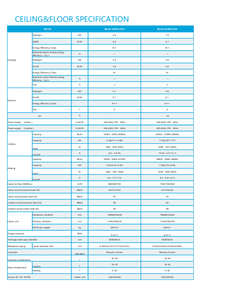 Auto Rsstart Function 2-Way Draining Auto Defrosting Independent Dehumidpcation Anti-cold Air Function 360ْ Air Flow Panel Sleep Mode Timer Low Ambient Cooling Healthy Filters Fresh Air Build-in Drain Pump Wired Control